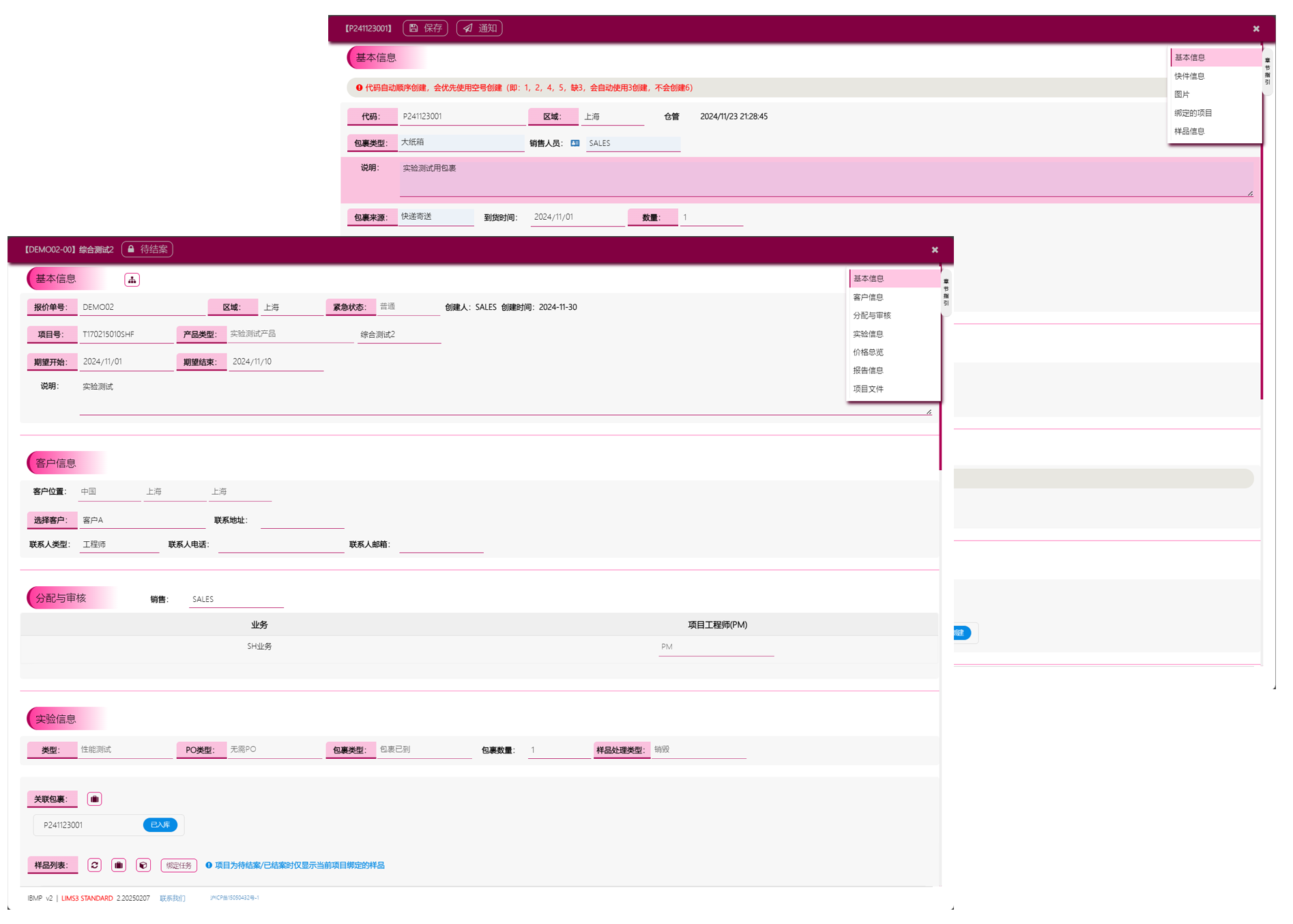 支持样品/包裹转库,状态变更,及全生命周期查询